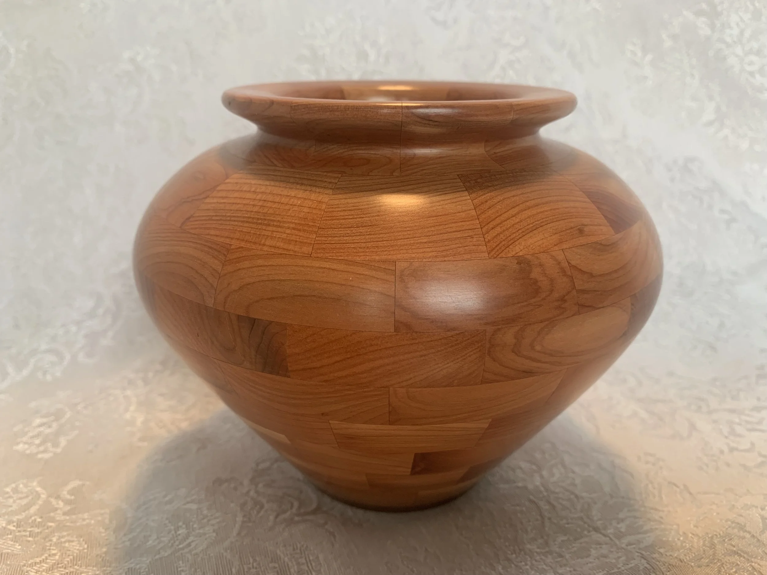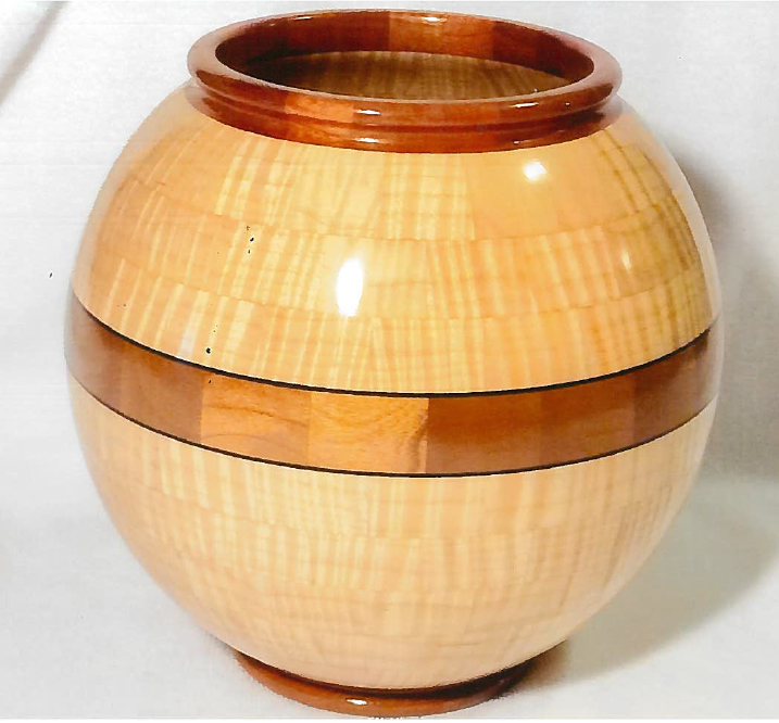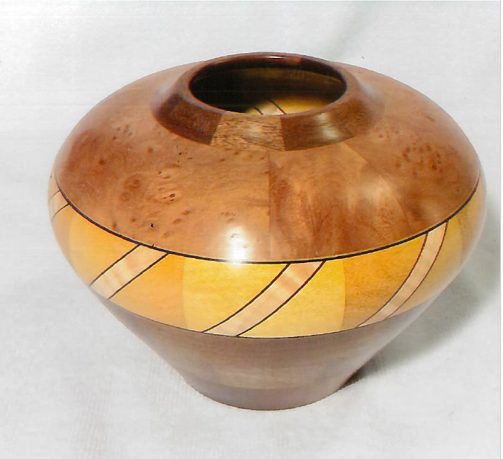 Donation No. 16 $100 / 2021 Walnut, Maple, Yellow Heart (162 pieces) 5 1/4" H x 6" Diameter