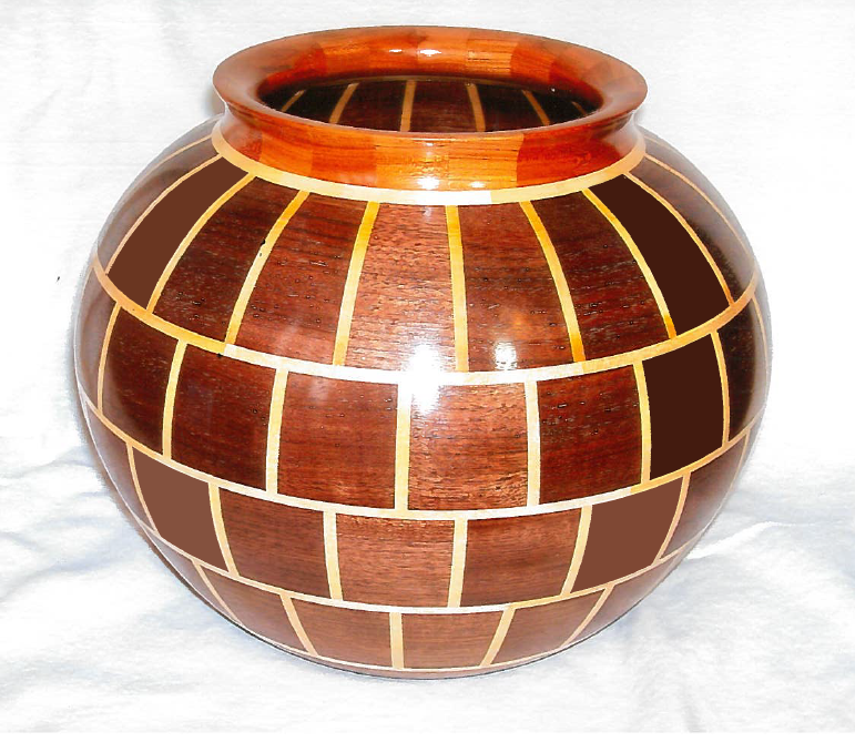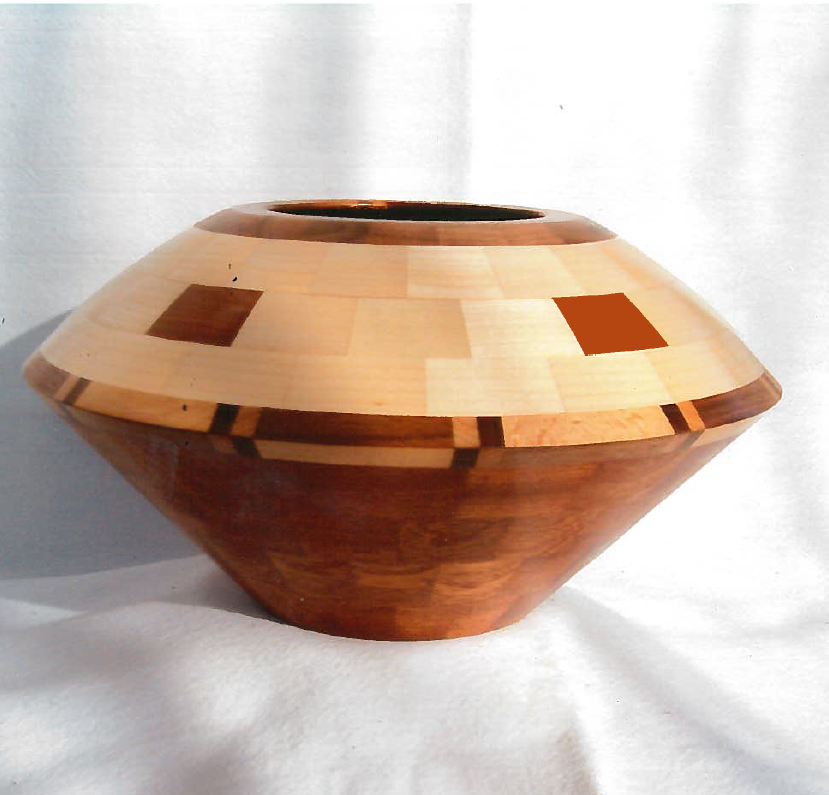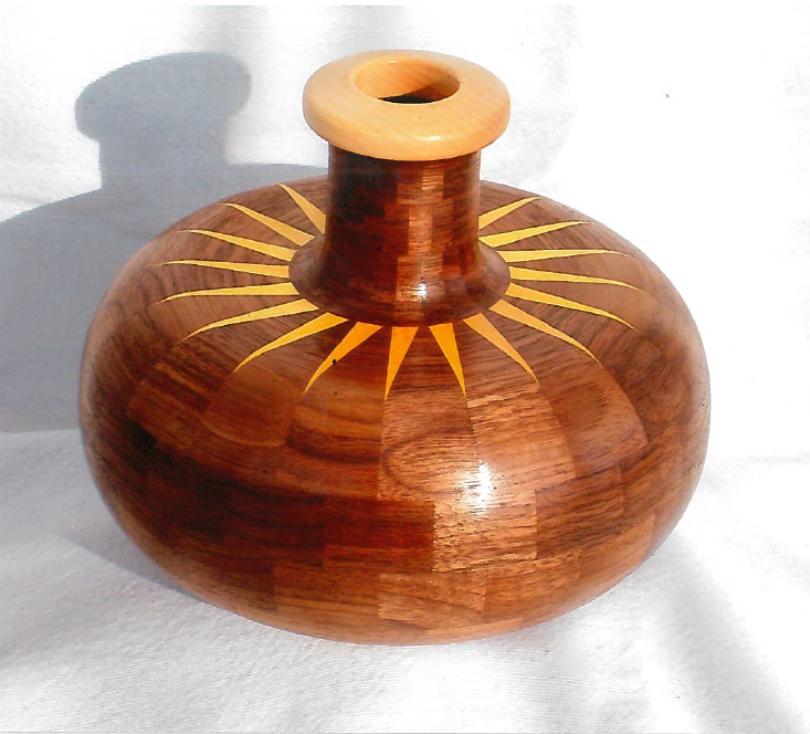 No. 5 $200 / 2007 Walnut, Maple, Bubinga (206 pieces) 6 3/4" H x 10" Diameter
