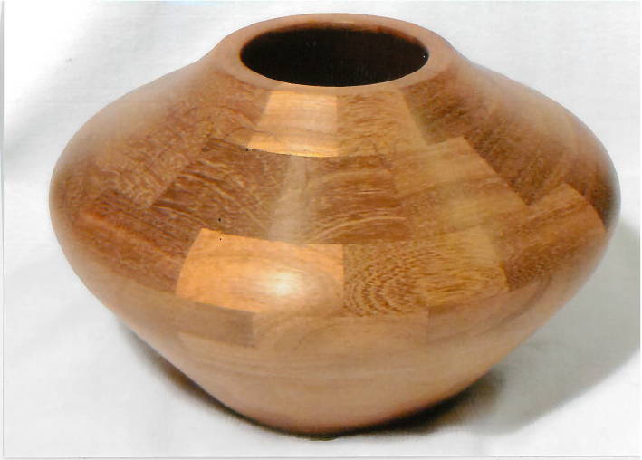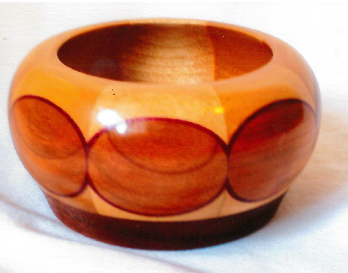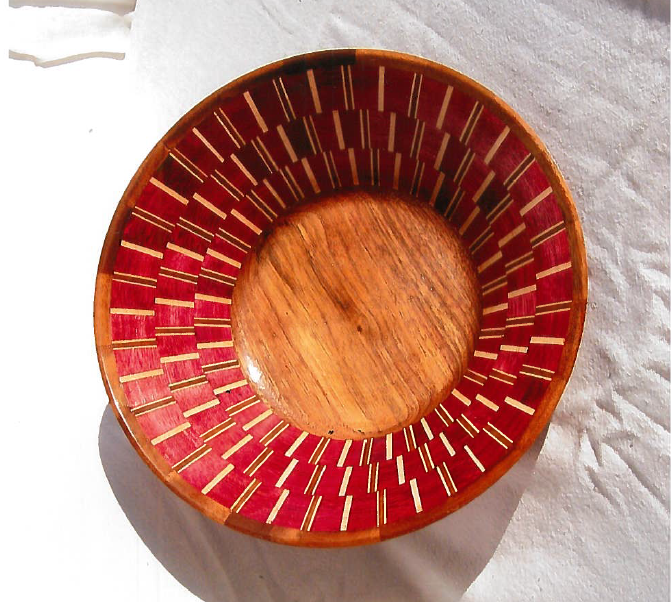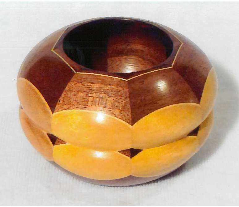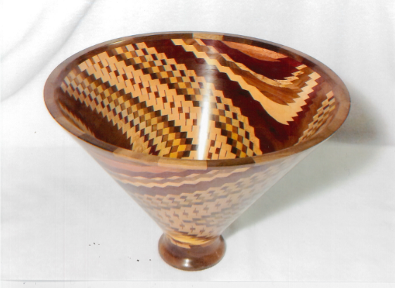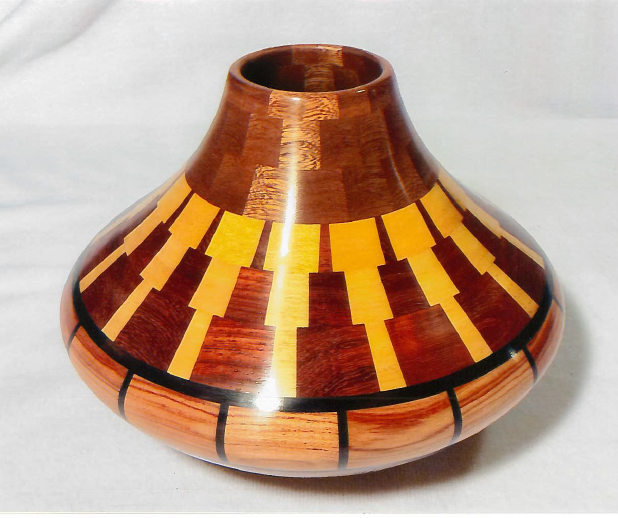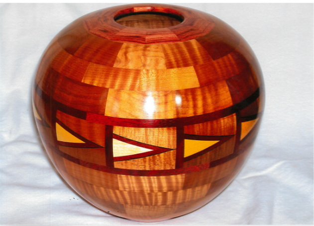 No. 40 $1000 / 2016 African Mahogany, Yellow Heart, Paduck, Blackwood, Tulip Wood, Maple (241 pieces) 6" H x 8" Diameter