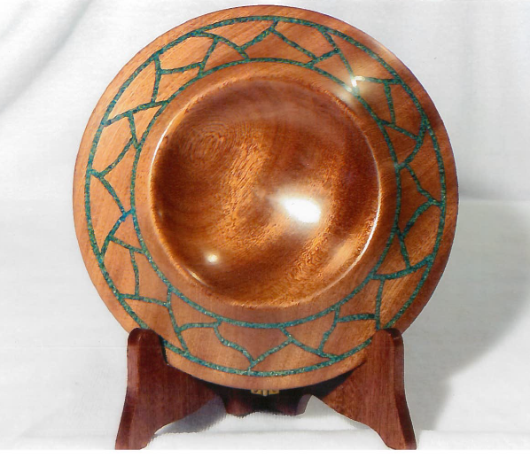 **SOLD** NO. 42 $100 / 2016 African Mahogany, Liquid Inlace (1 piece) 1 3/4" H x 7 1/4" Diameter