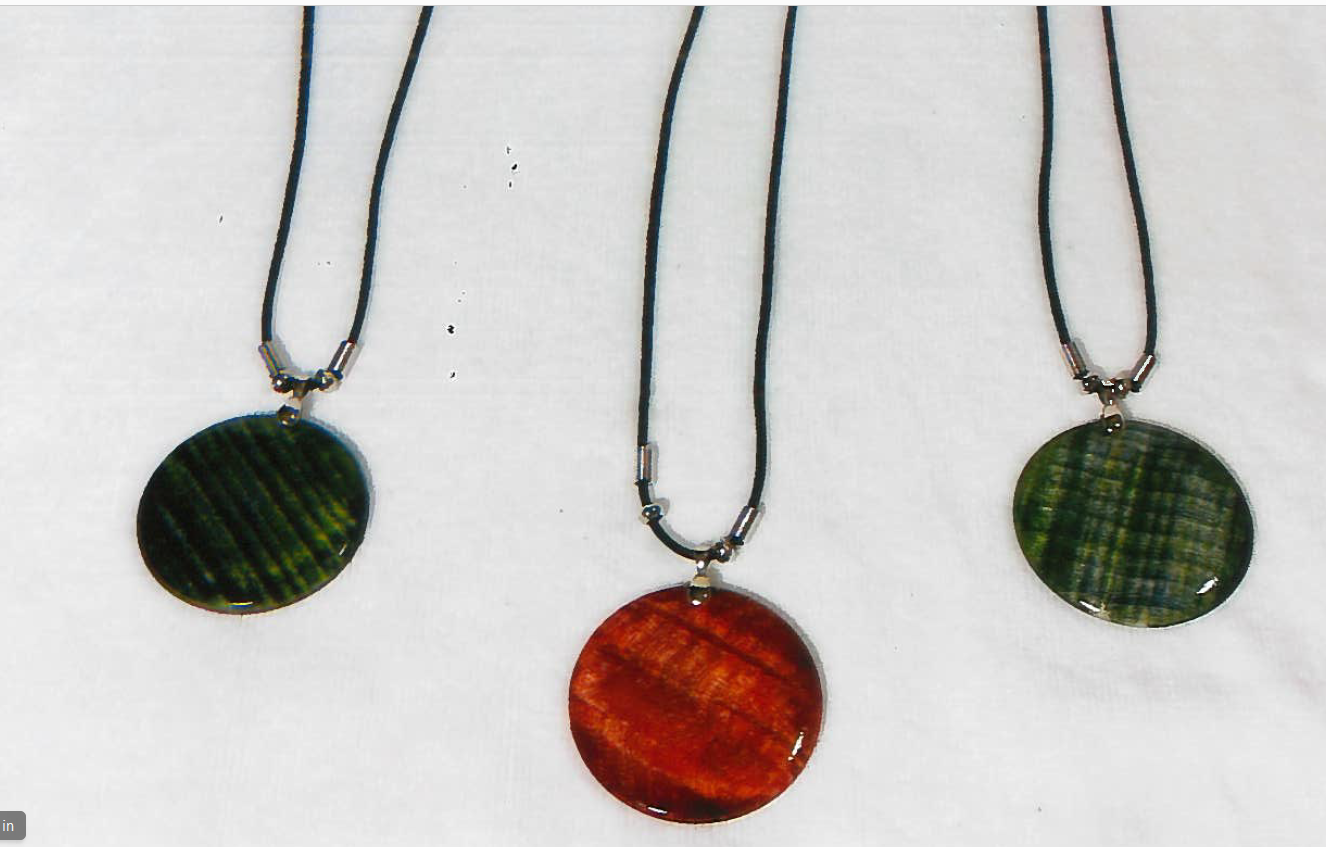 **SOLD** No. 22 $50 / 2013 Philippine Mahogany, Walnut, Dyed Maple Veneer (40 pieces) 2 3/8 H x 3 1/4 Diameter