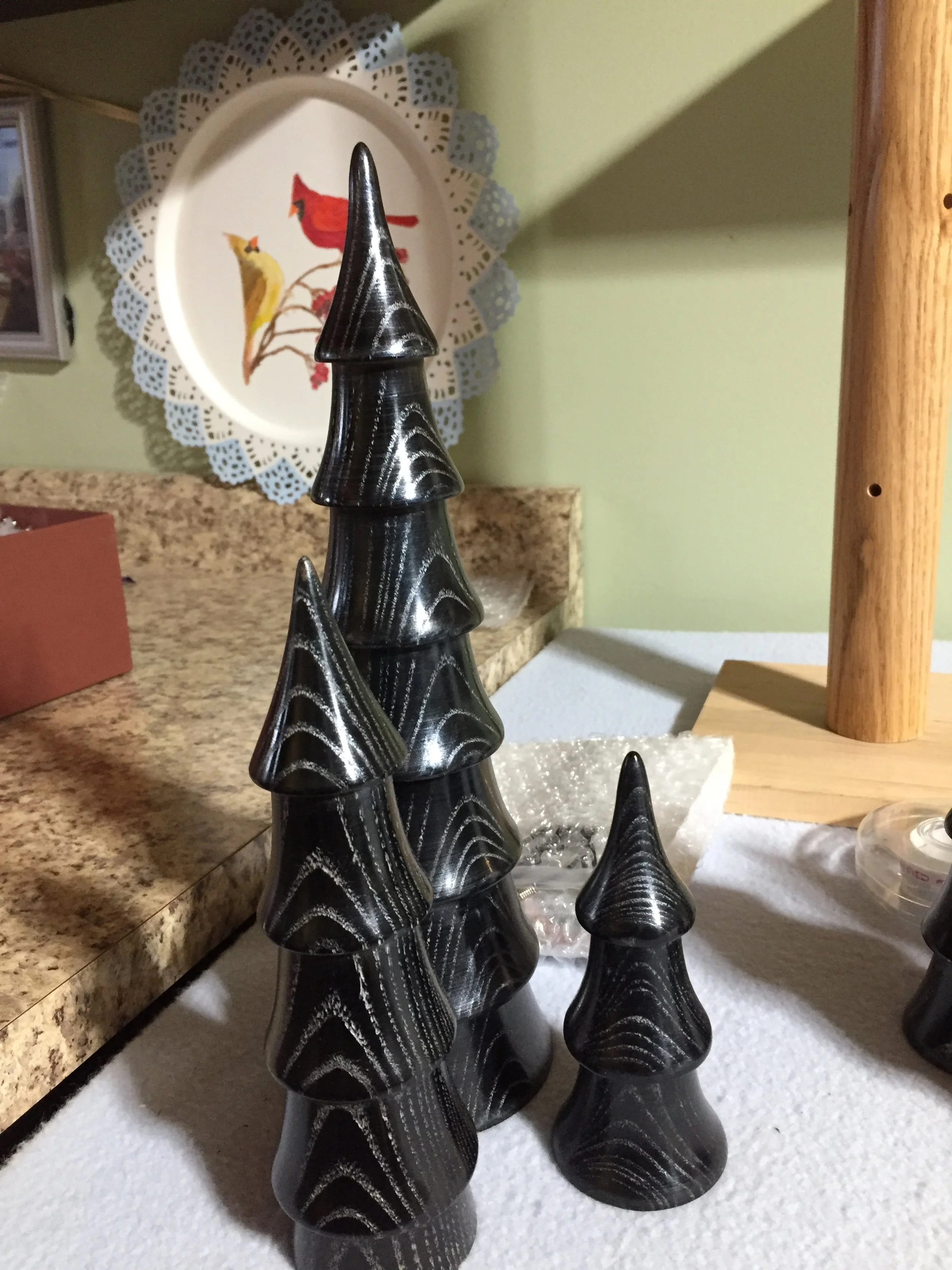 Black Christmas with silver highlights 5, 8 & 11" tall $60.00 per set